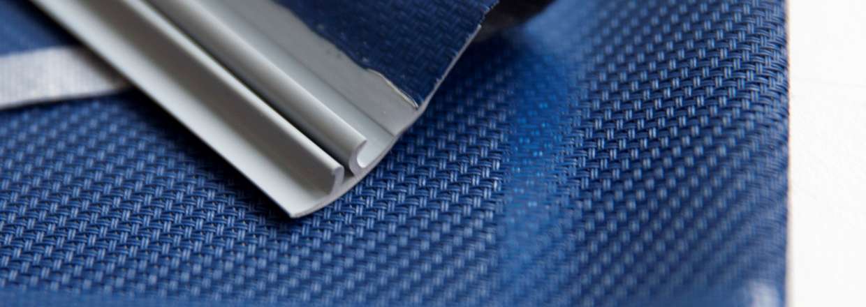 U kunt een screendoek aan de bovenkant laten voorzien van de Hylas Easy-Click. Deze kunststof strip wordt in plaats van een bovenzoom aan het doek gelast met een maximale breedte van 6.0 meter.