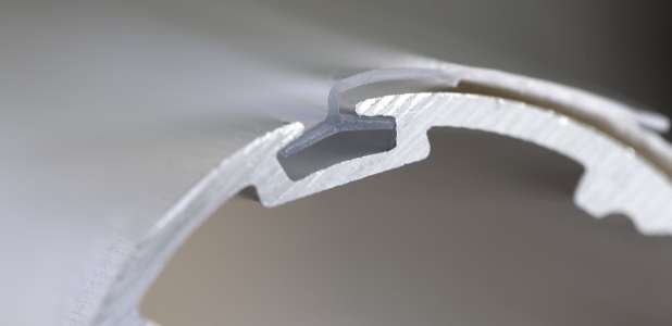 U kunt een screendoek aan de bovenkant laten voorzien van de Hylas T-Strip. Deze kunststof strip wordt in plaats van een bovenzoom aan het doek gelast.