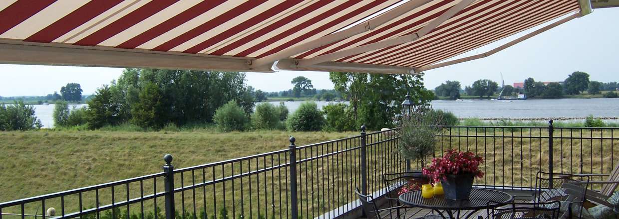 Een zonweringdoek wordt standaard in banen van 120.0 cm aan elkaar gestikt met aan beide kanten een zijzoom van 5.0 cm en een boven- en onderzoom van 3.0 cm. De onderzoom wordt uitgevoerd met een dubbele naad, hét handelsmerk van Hylas. Dit is niet alleen herkenbaar, maar vooral goed voor de levensduur.